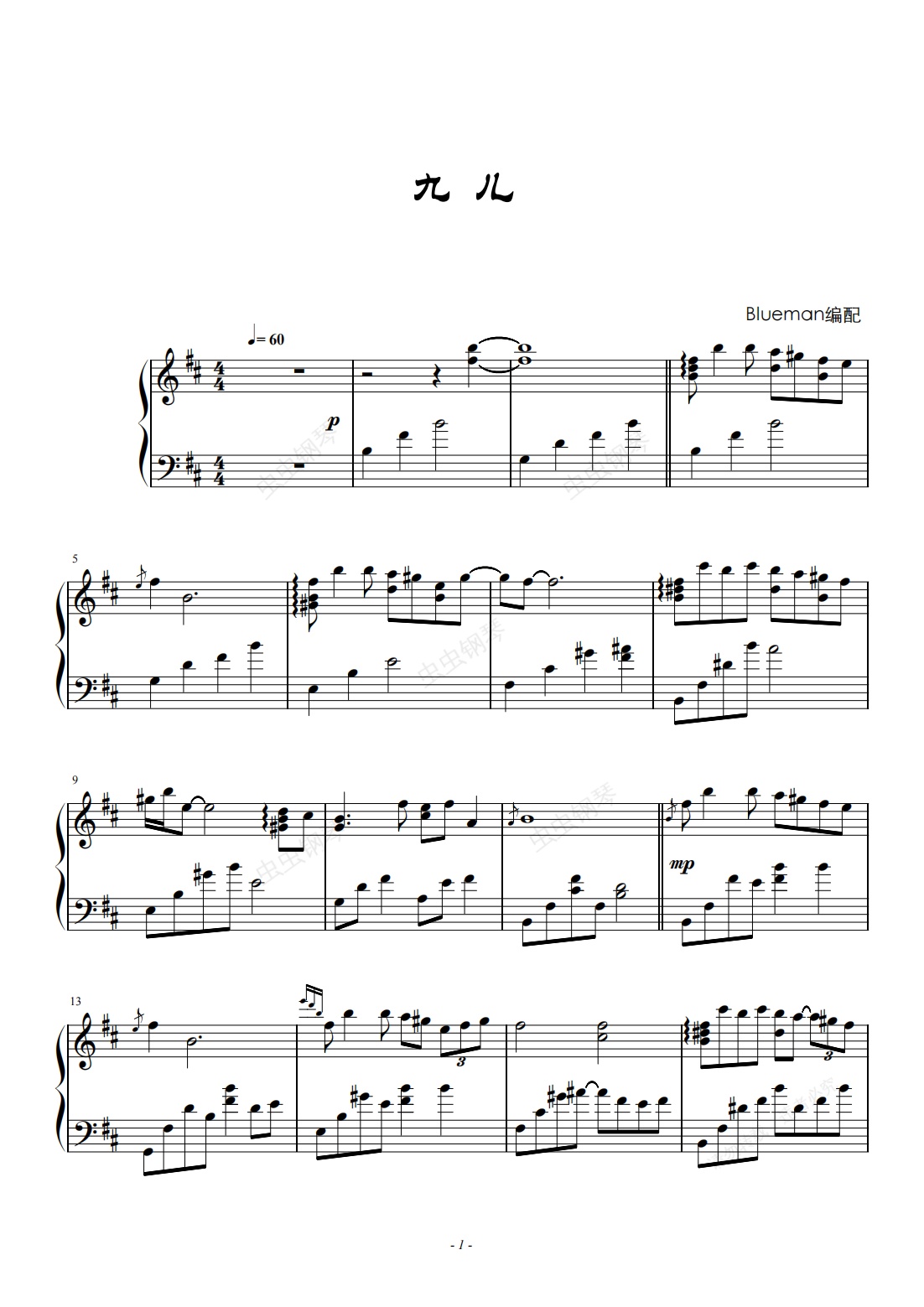 钢琴谱:九儿