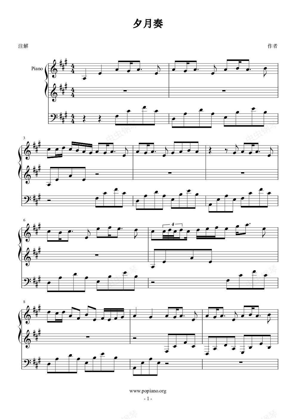 钢琴谱:夕月奏
