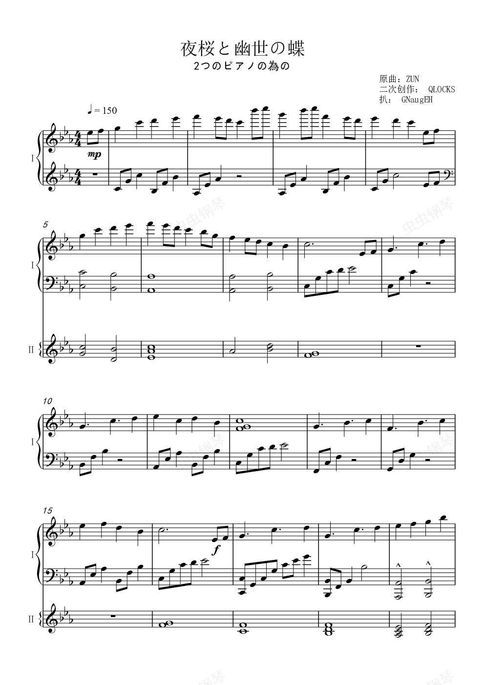 钢琴谱:【东方】QLOCKS - 夜桜と幽世の蝶