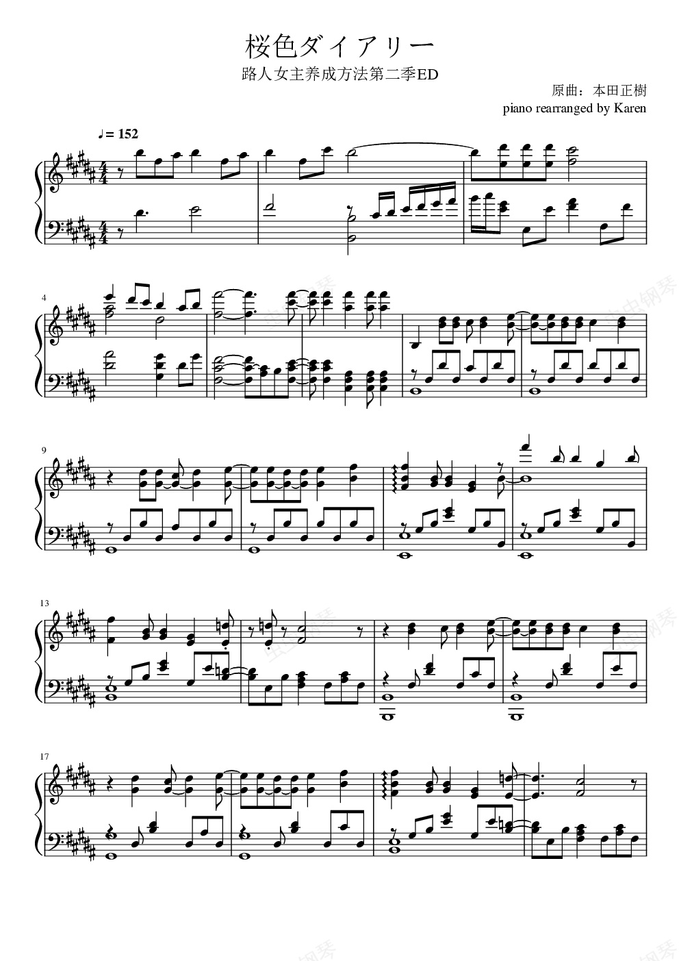 钢琴谱:【路人女主第二季ED】桜色ダイアリー