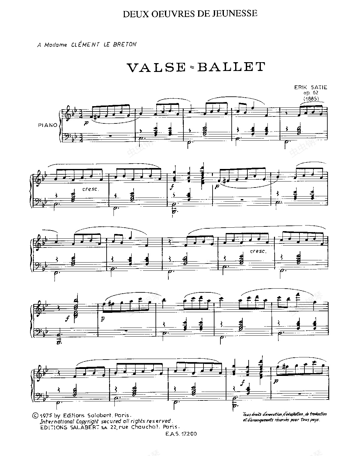钢琴谱:萨蒂 芭蕾圆舞曲 Valse-Ballet