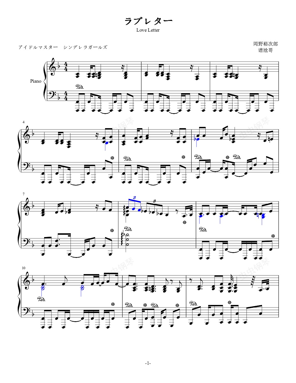 钢琴谱:【偶像大师】ラブレター 情书 love letter