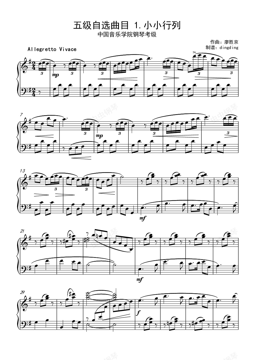 钢琴谱:中国音乐学院考级五级自选曲目 1.小小行列