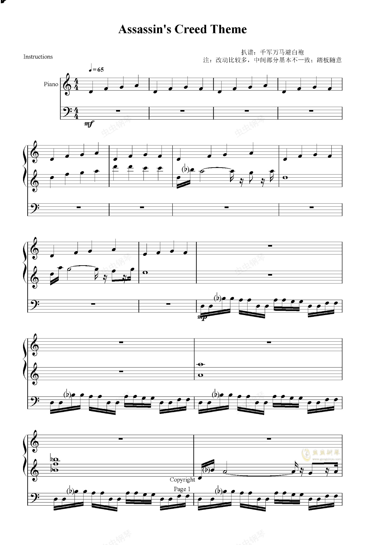 钢琴谱:Assassin's Creed Theme(刺客信条相关)(改编版)