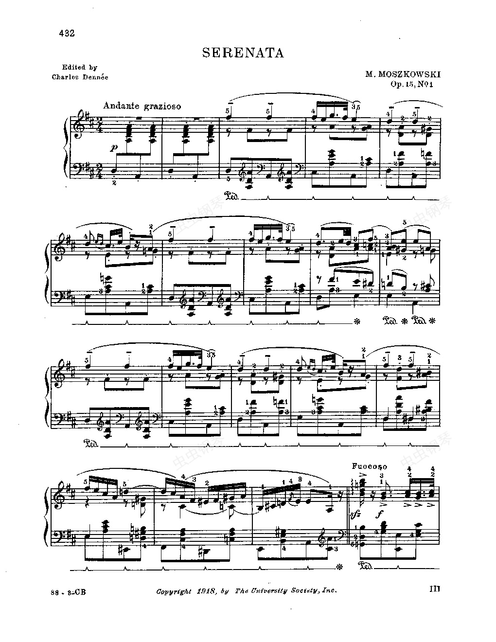 钢琴谱:莫什科夫斯基   小夜曲   Op.15  No.1