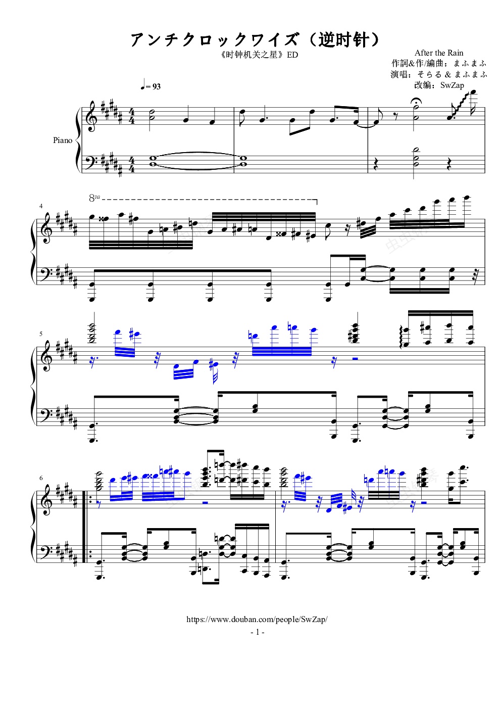 【时钟机关之星ED】 After the Rain - アンチクロックワイズ(逆时针)