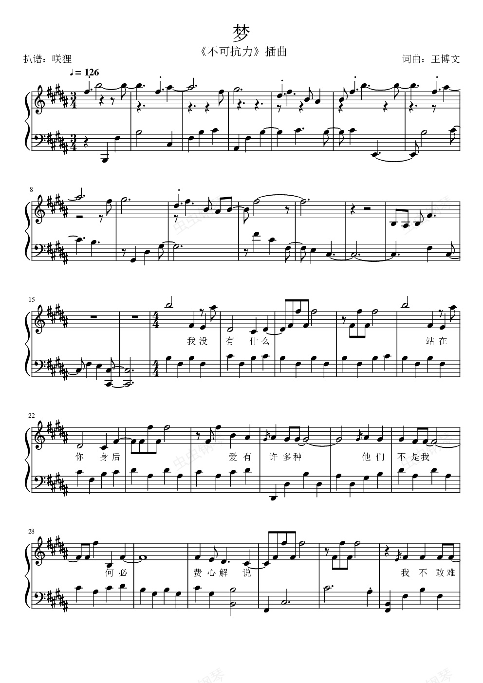 钢琴谱:梦 独奏版 - 电影《不可抗力》插曲