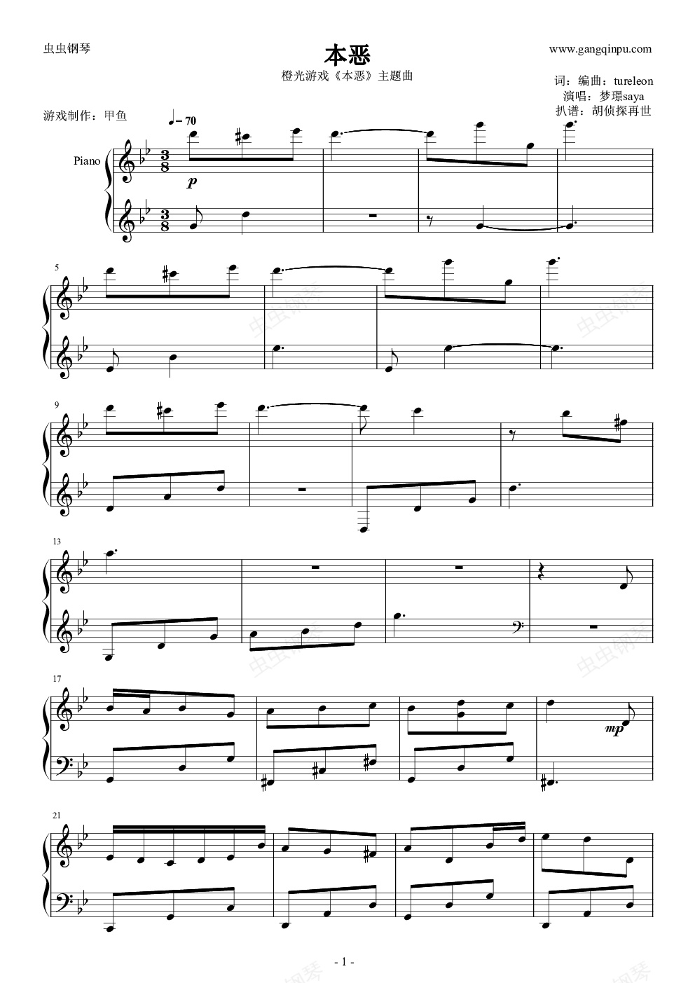 这个是橙光游戏甲鱼制作的《本恶》主题曲。由梦璟SAYA演唱。 自己扒的,希望大家喜欢哈!!