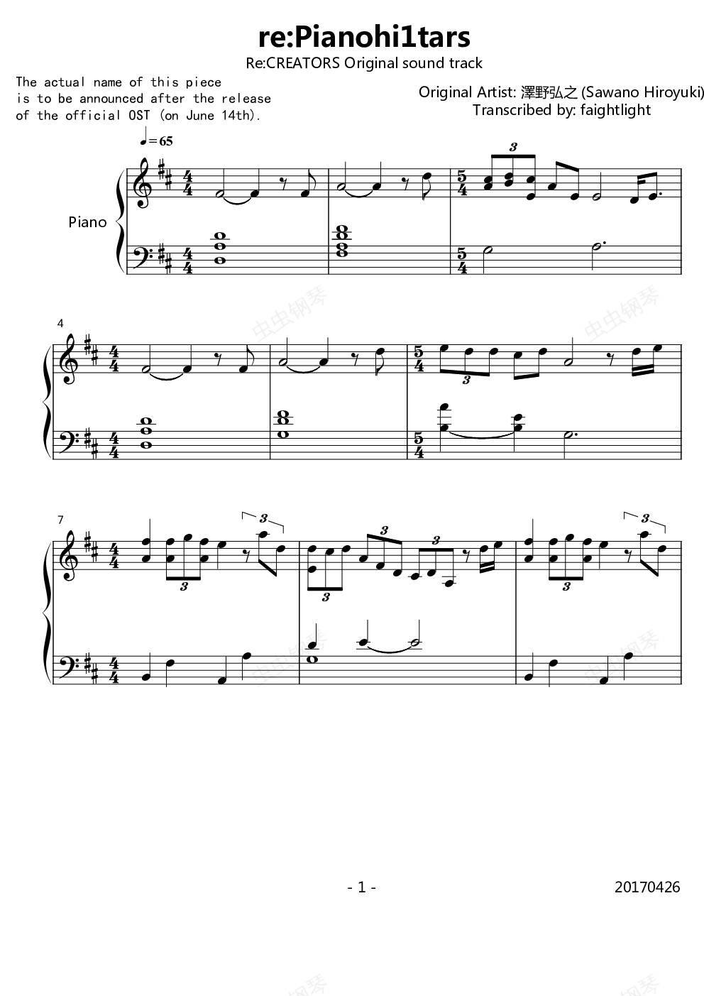钢琴谱:【Re: CREATORS】OST- re:Pianohi1tars
