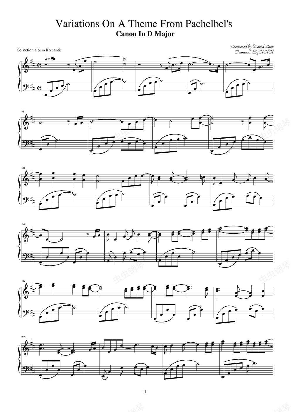 钢琴谱:【Canon In D Major】 - (唯美D大调卡农)