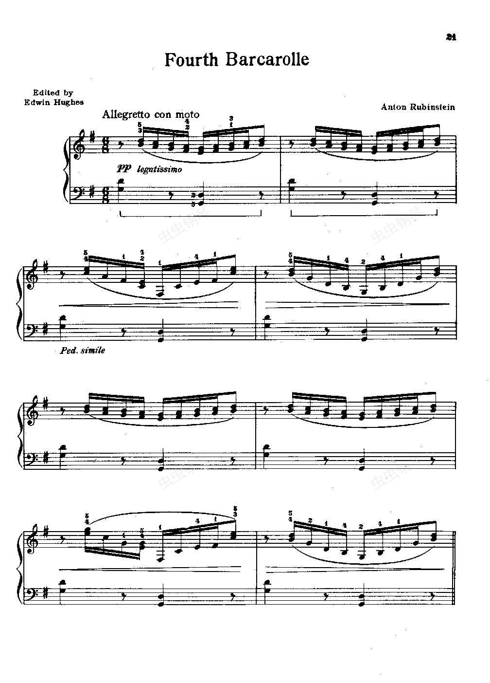 钢琴谱:安东·鲁宾斯坦 G大调船歌
