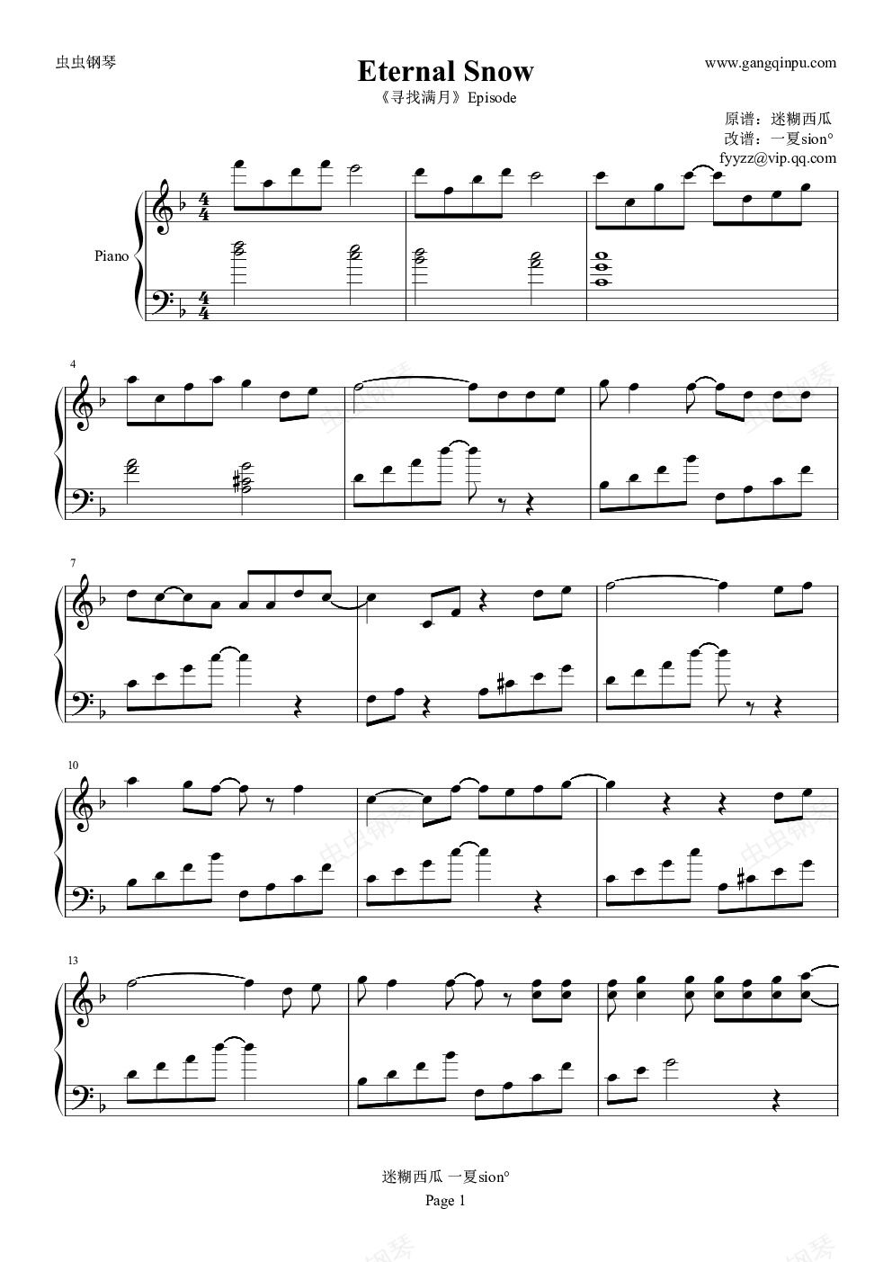 钢琴谱:永恒的雪 Eternal Snow-《寻找满月》Episode