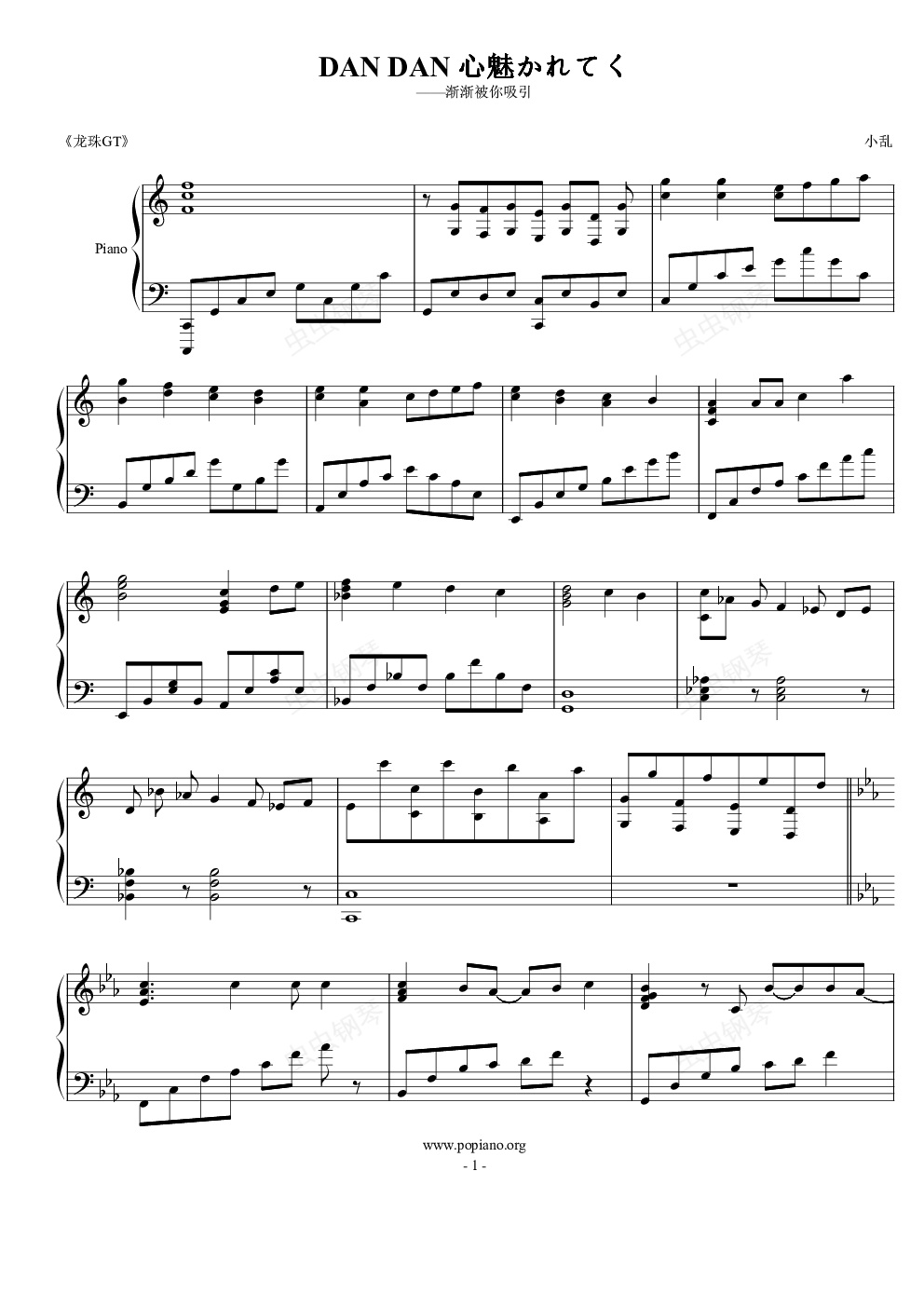 钢琴谱:【龙珠GT】DAN DAN 心魅かれてく