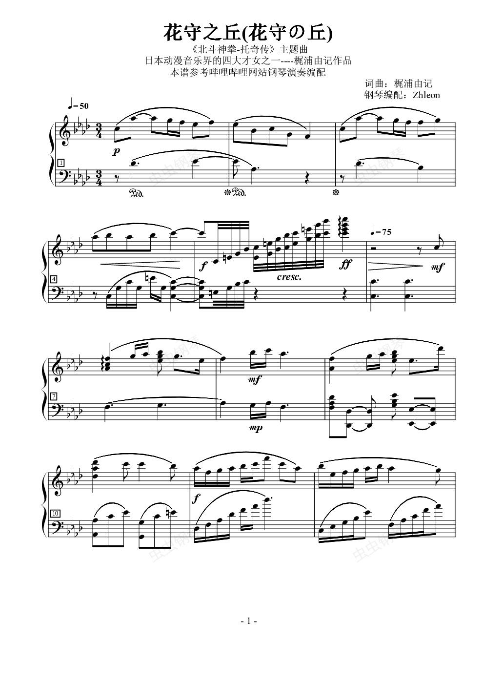 钢琴谱:花守之丘 (花守の丘)