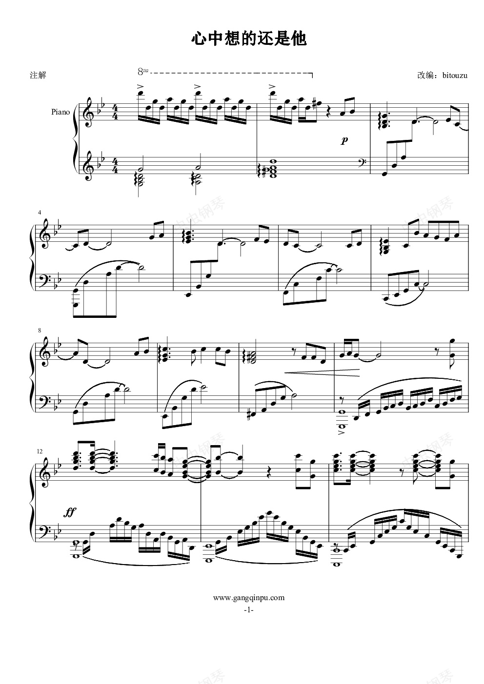 钢琴谱:《虹猫蓝兔七侠传》ed心中想的还是他