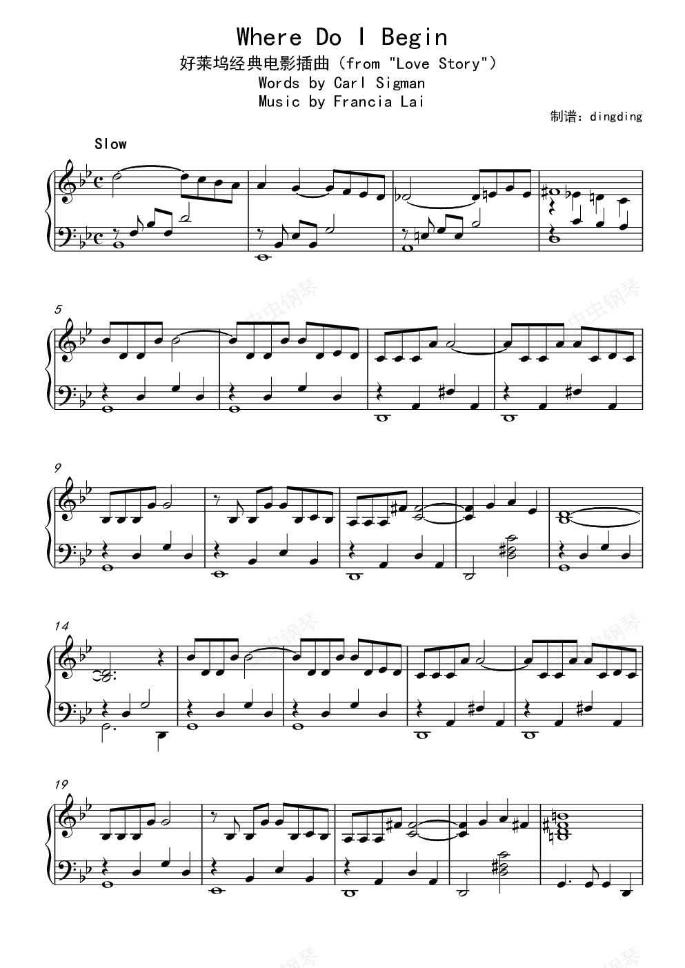 钢琴谱:Where Do I Begin好莱坞经典电影插曲