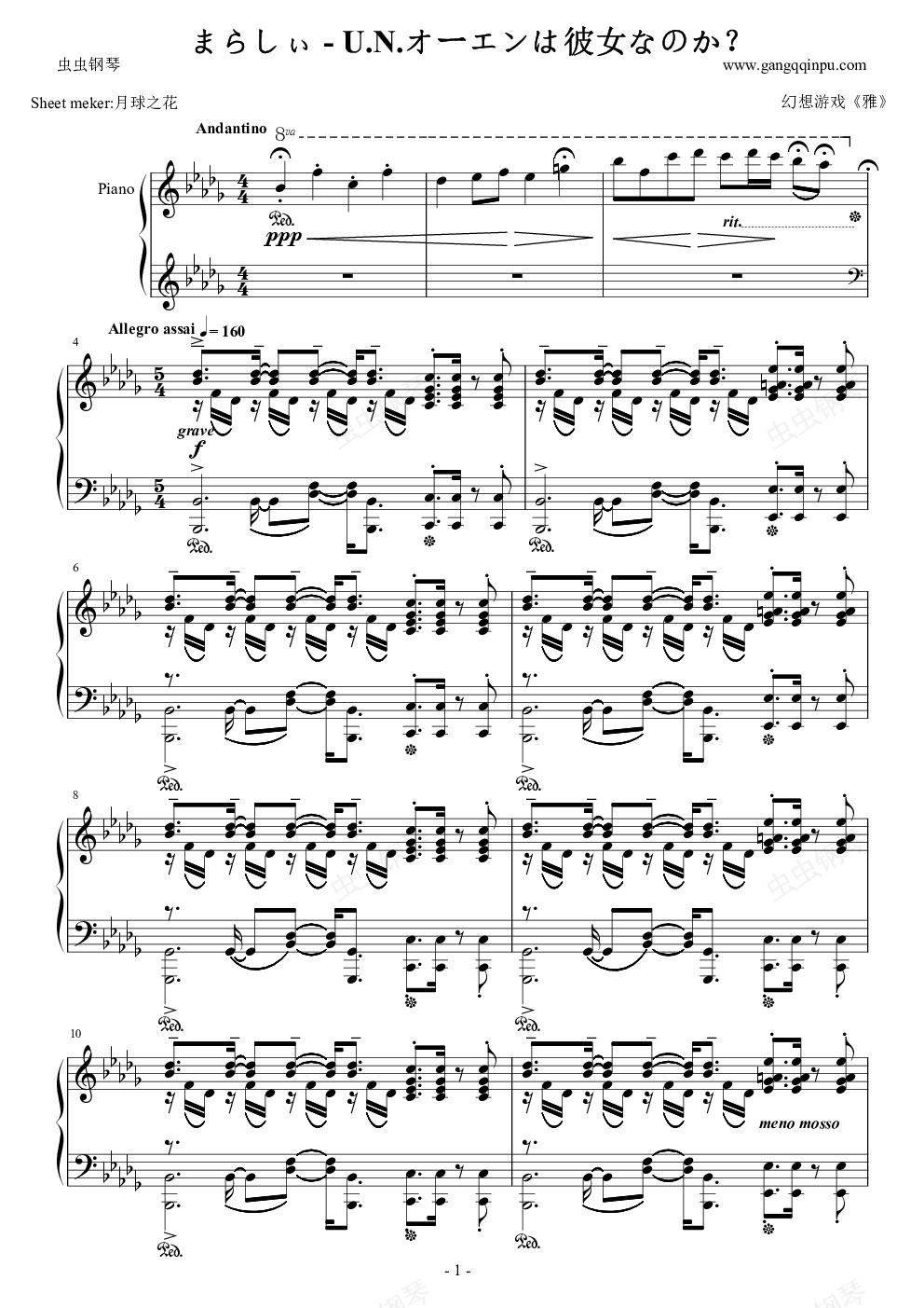 钢琴谱:触手猴 幻想游戏《雅》 U.N.オーエンは彼女なのか?