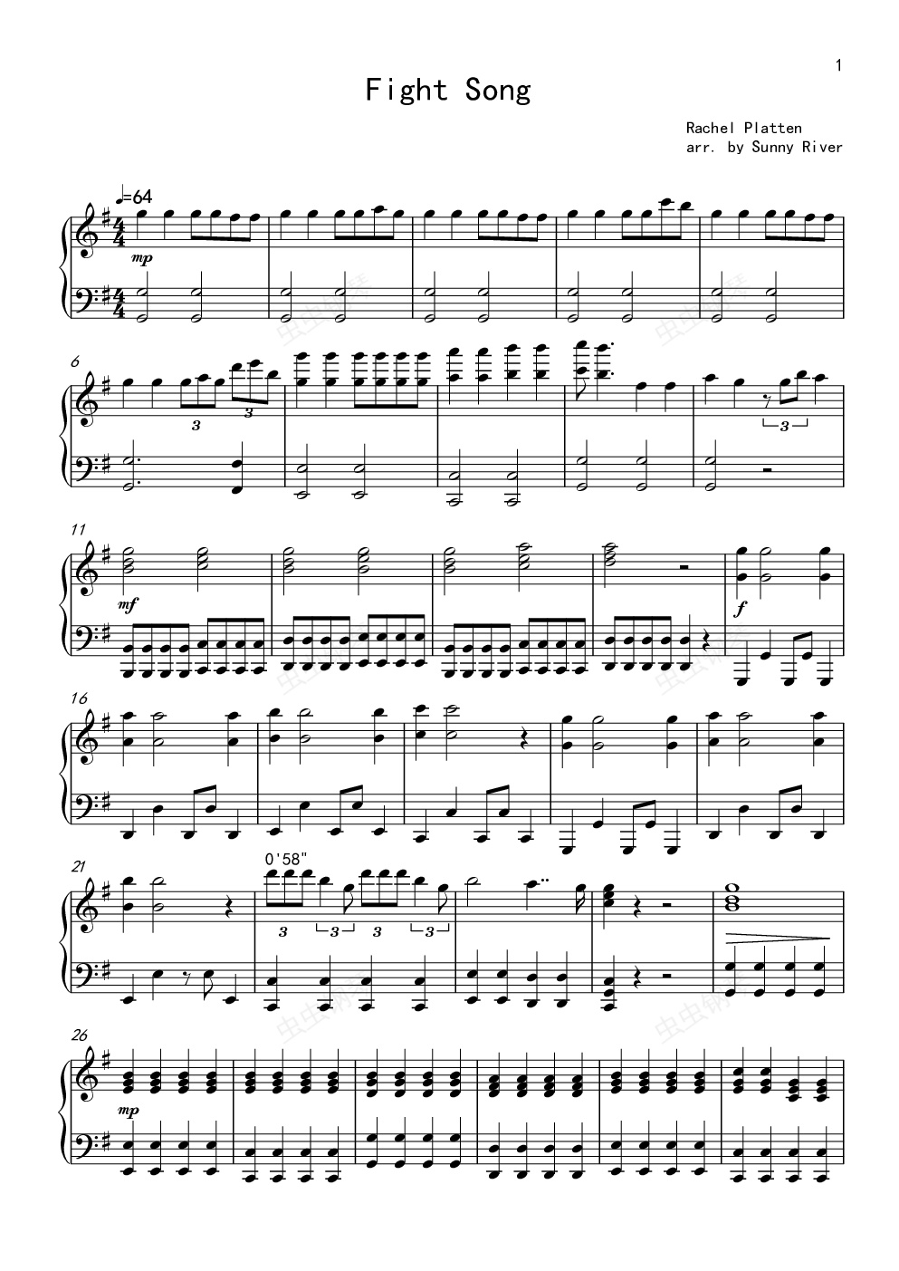 钢琴谱:Fight Song 合唱钢琴伴奏谱 何佩勋编配