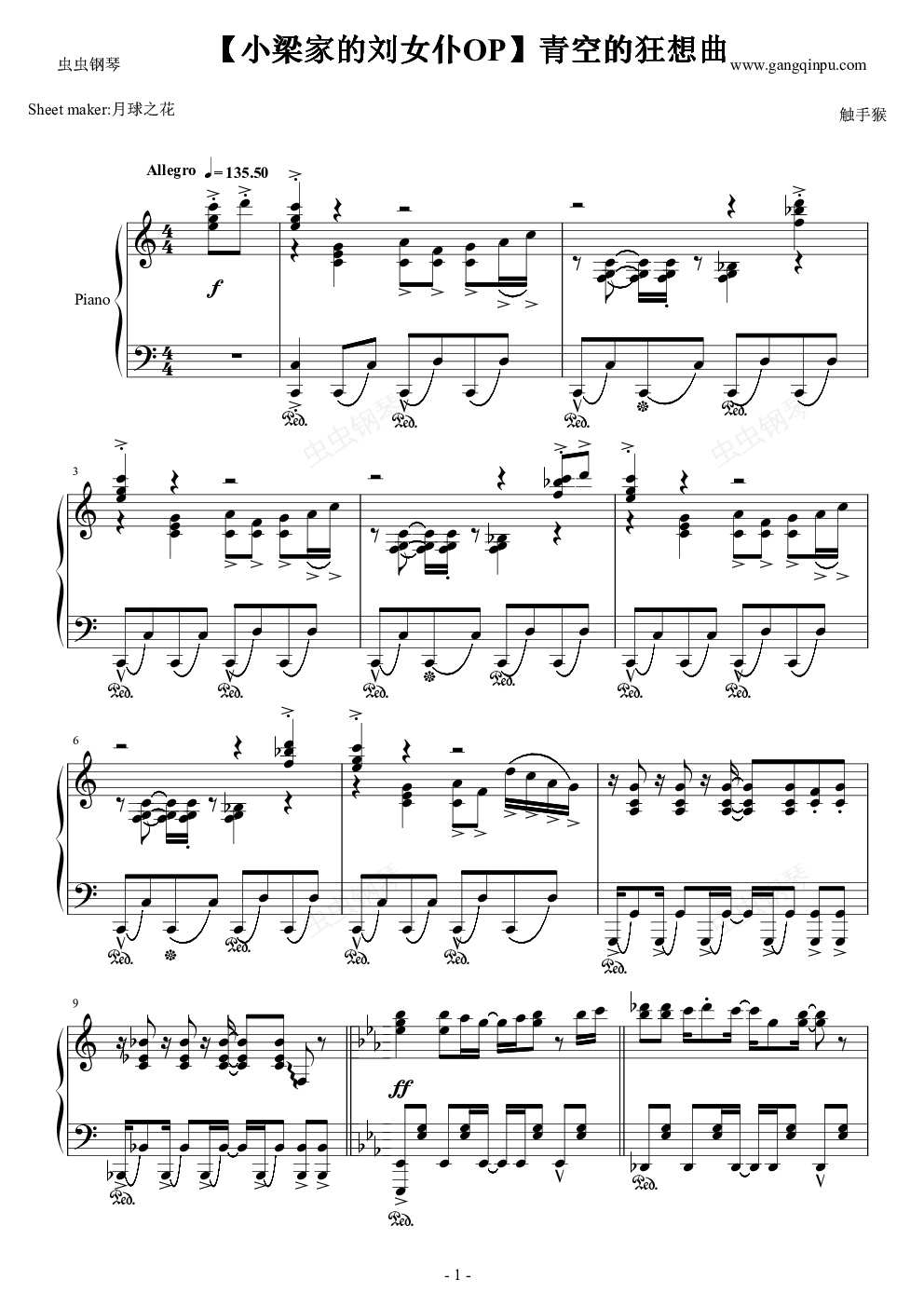钢琴谱:【小梁家的刘女♂仆OP】青空的狂想曲