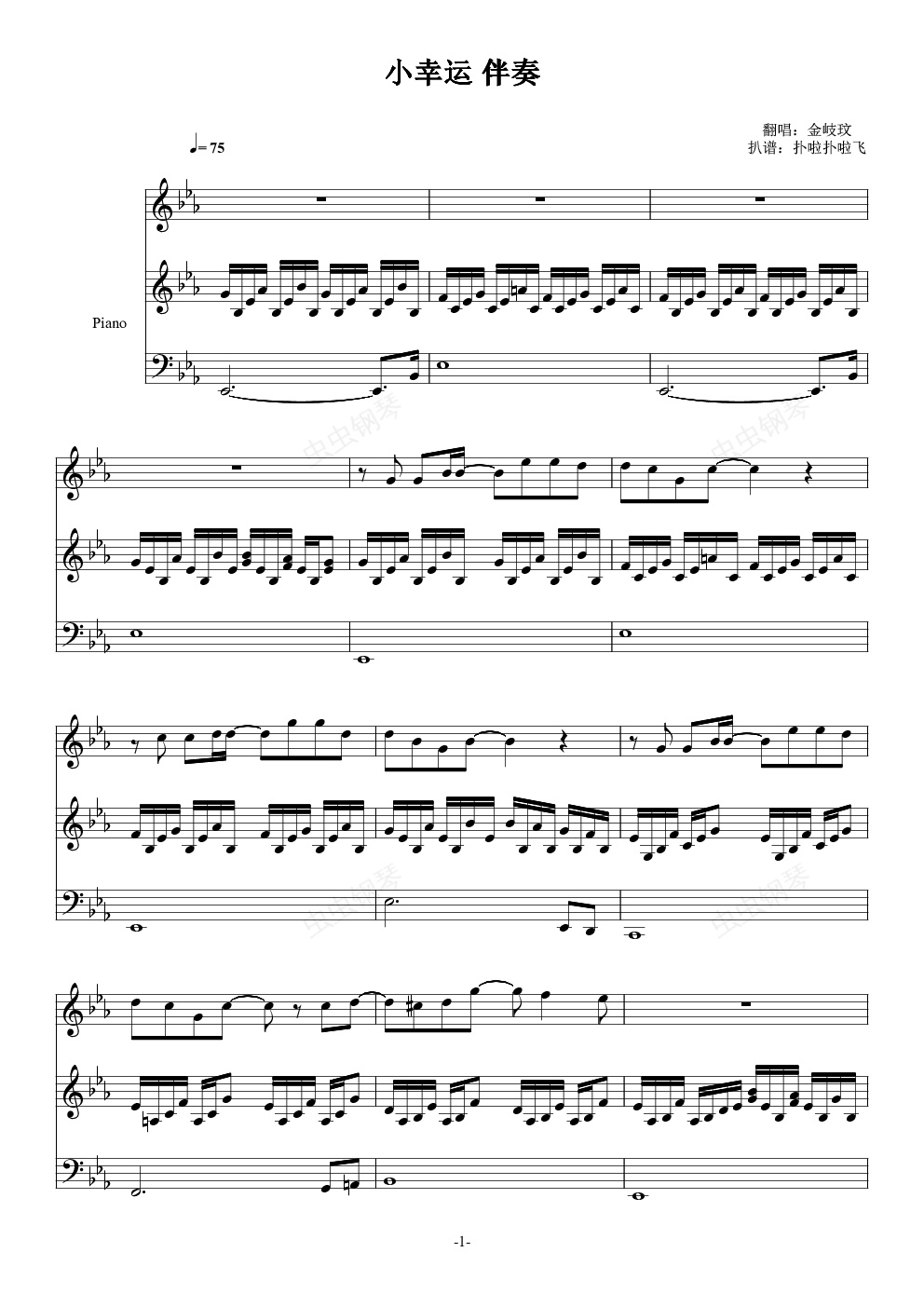 钢琴谱:小幸运钢琴伴奏(金岐玟翻唱版)