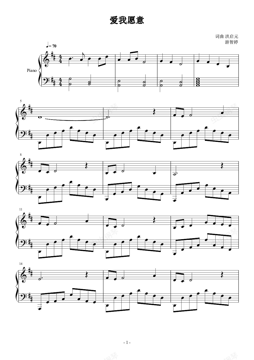 钢琴谱:爱我愿意
