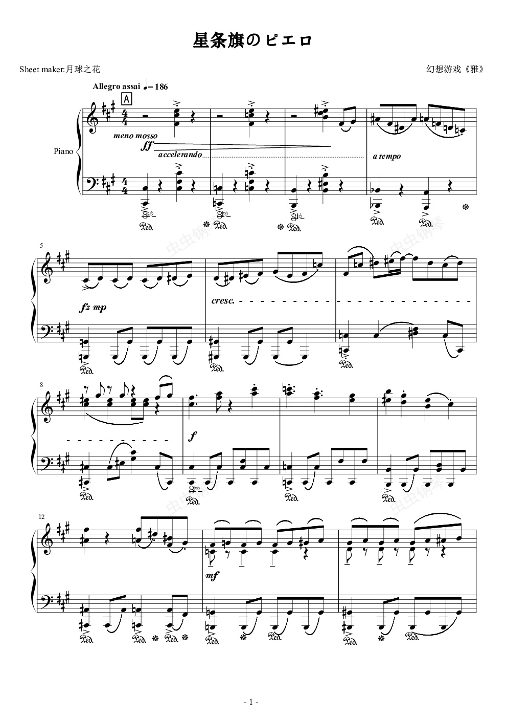 钢琴谱:触手猴 幻想游戏《雅》星条旗のピエロ