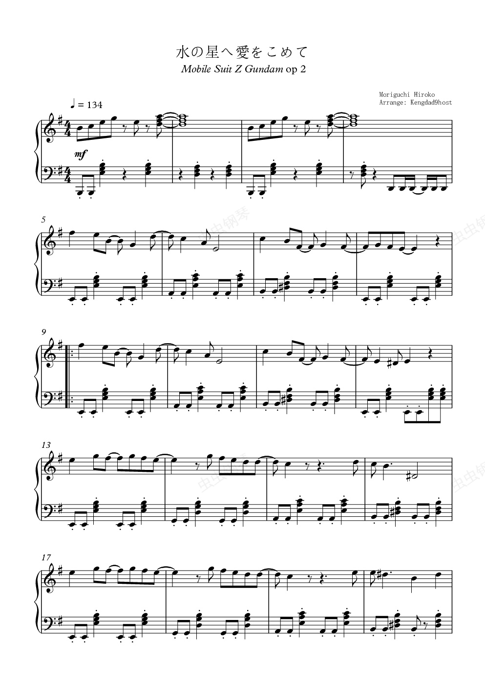 钢琴谱:Z高达op2:水の星へ爱をこめて