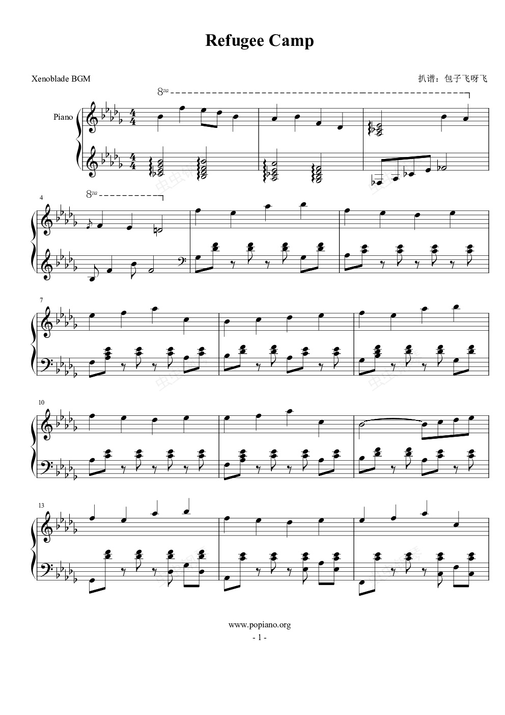 钢琴谱:Refugee camp