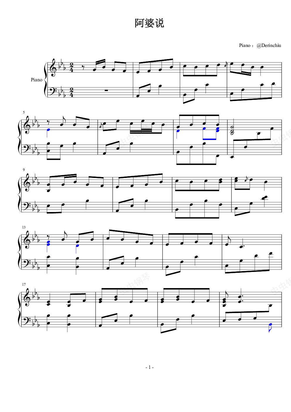 钢琴谱:阿婆说