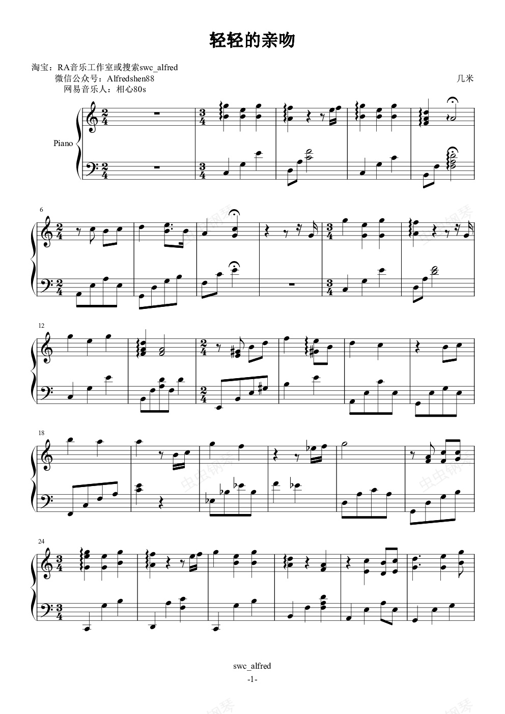 钢琴谱:轻轻的亲吻