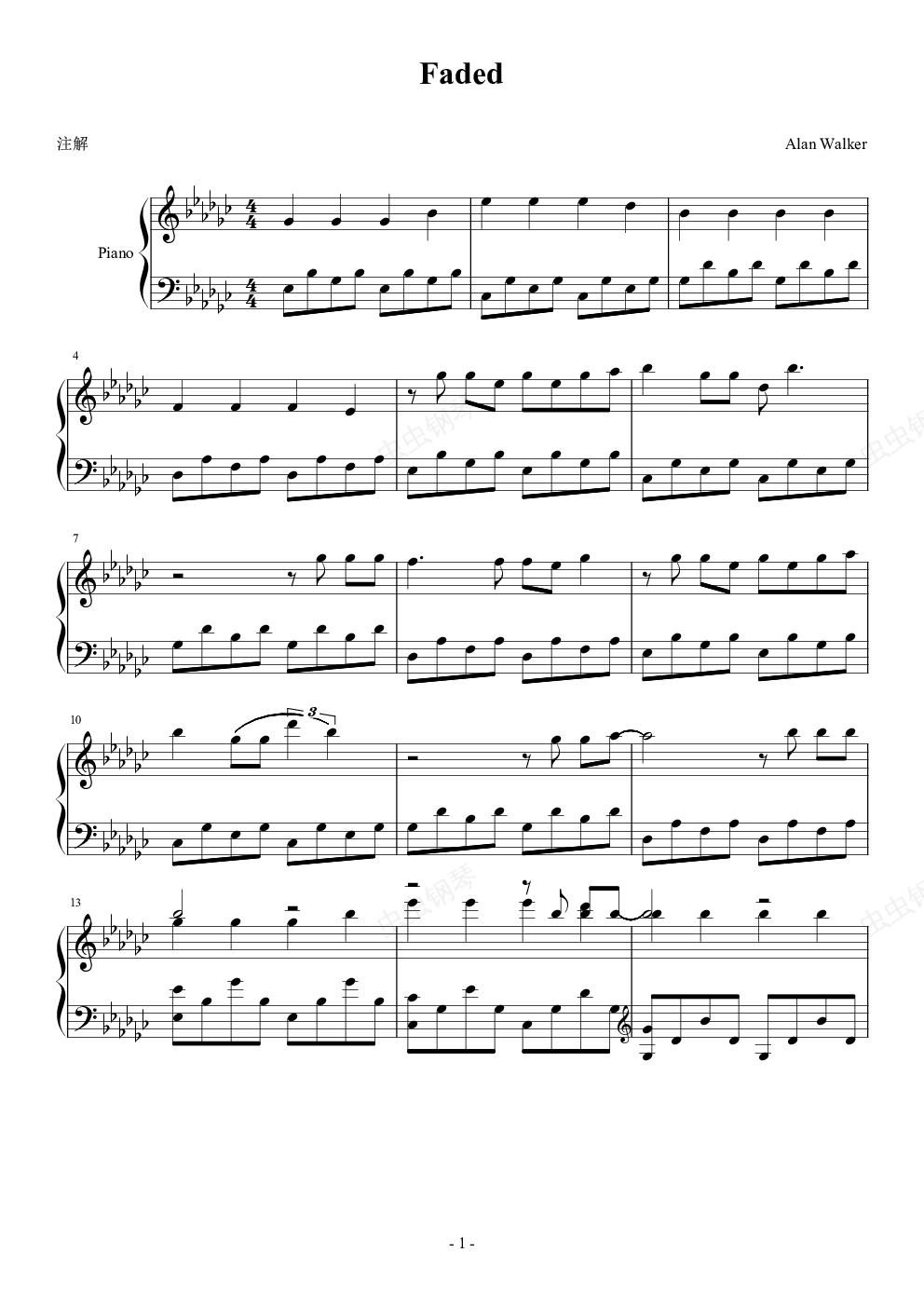 钢琴谱:Faded