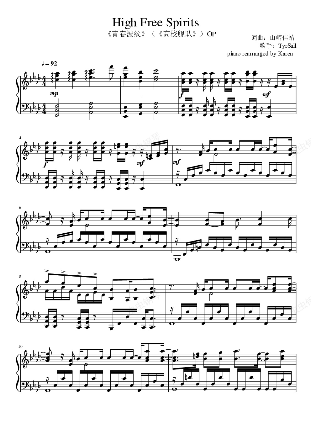 刚刚补完《青春波纹》,自古军宅番出神曲,OP非常有感觉。特别是最后一集中用作BGM时听着好鸡冻啊。      也看了之前大佬的编配。感觉还原度和装饰的的运用都比我高的多。(也发现自己谱面有些地方违反了音值组合,赶紧改了)      主歌改编的偏柔和,控制力度为后面做对比铺垫;高潮部分采用了比较“暴力”的左手伴奏型(感觉和吹雪风格好像啊233),突出燃的感觉。所以结尾处没忍住,改编成了强音的结尾,好像也别有风味,希望大家不会觉得有什么问题。但是试听我选的音色好像太柔和了,不知道有没有推荐比较适合燃曲的音色。      番看得比较晚了,而且写的比较菜。之所以发上来是因为很喜欢这首曲子,想和大家交流一下,得到一些建议。第22和30小节的左手节奏虽然听上去没什么毛病但是写的时候感觉很奇怪,不知道大佬们怎么看。19和33小节的右手为了保证音效,写的很别扭,导致很难弹,有没有什么好办法弄的简单一点。  ----------------------------------------------------  (之前的试听不完整,不知道什么原因,重新上传一遍,正确长度是1:31)