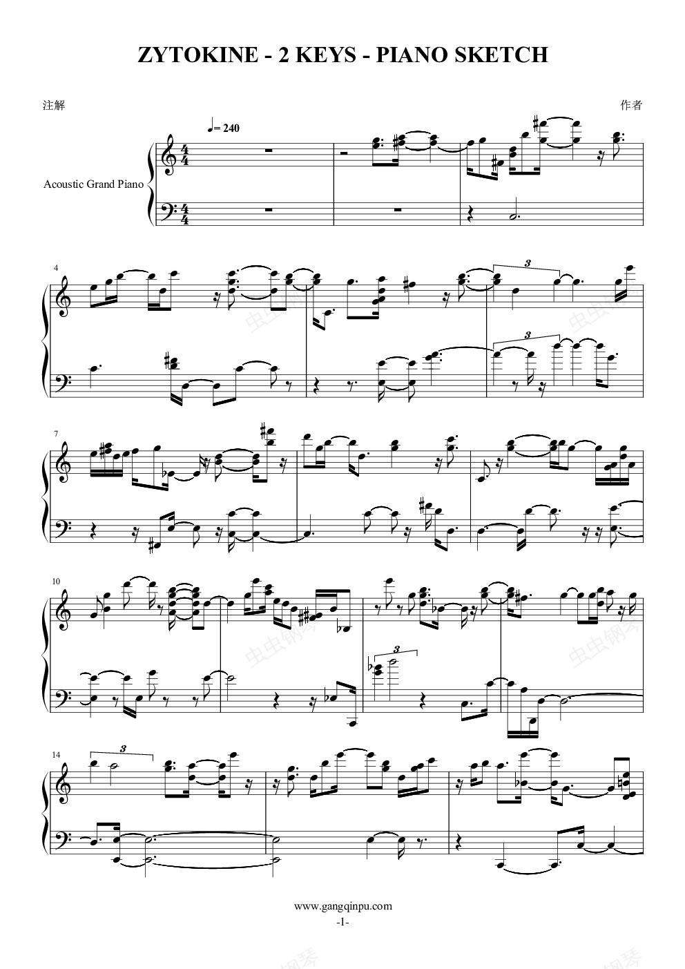 钢琴谱:2-keys东方同人曲