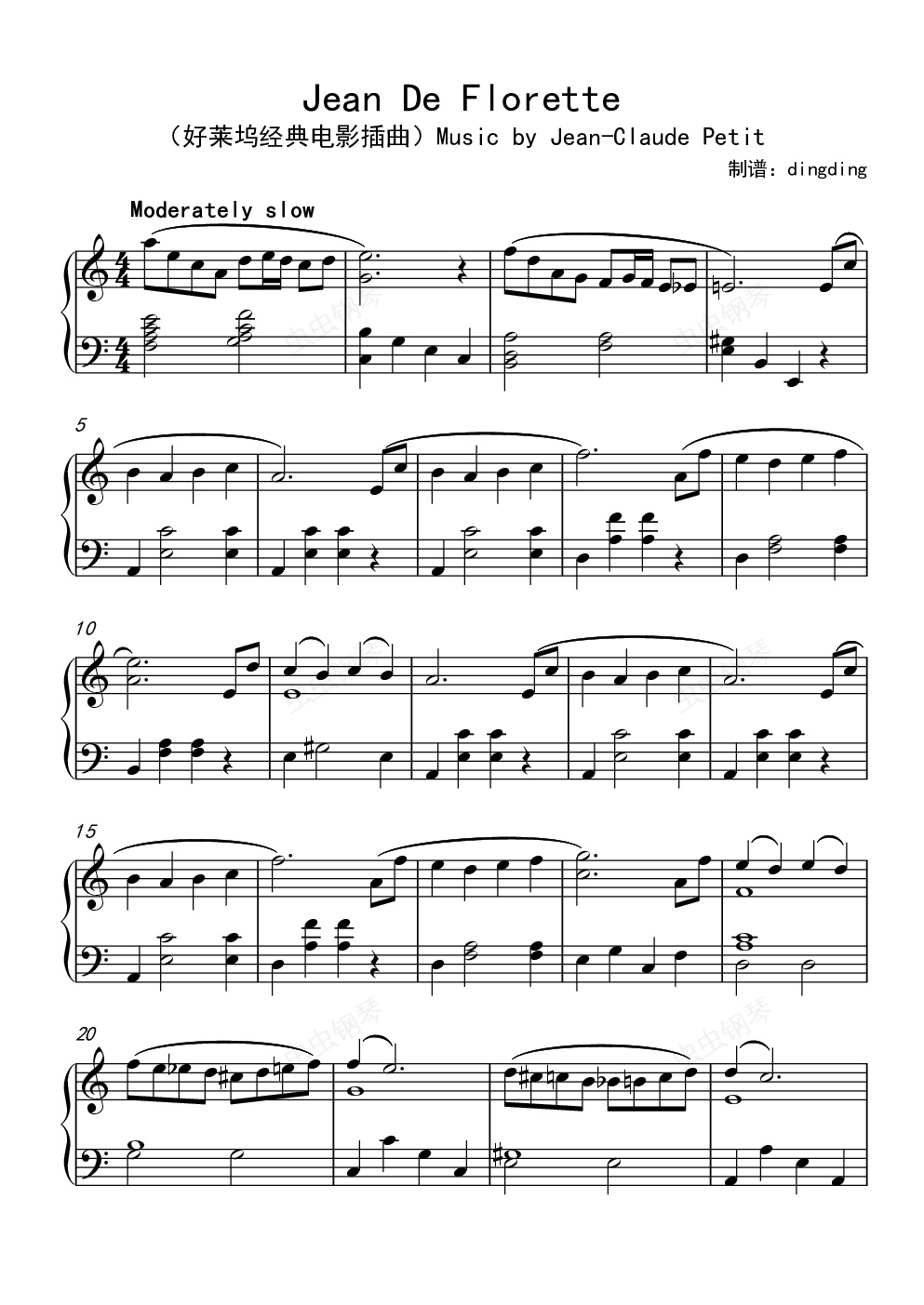 钢琴谱:Jean De Florette好莱坞经典电影插曲