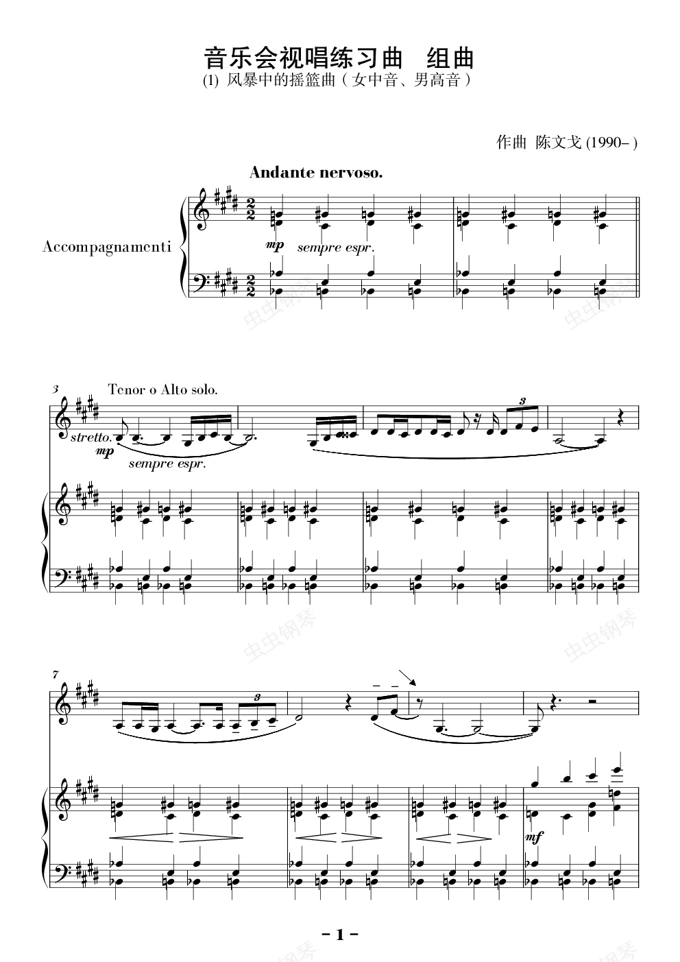 钢琴谱:风暴中的摇篮曲-陈文戈