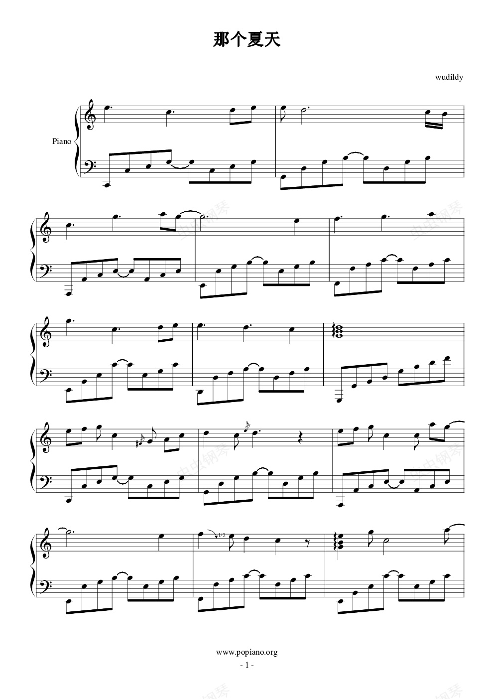 钢琴谱:那个夏天