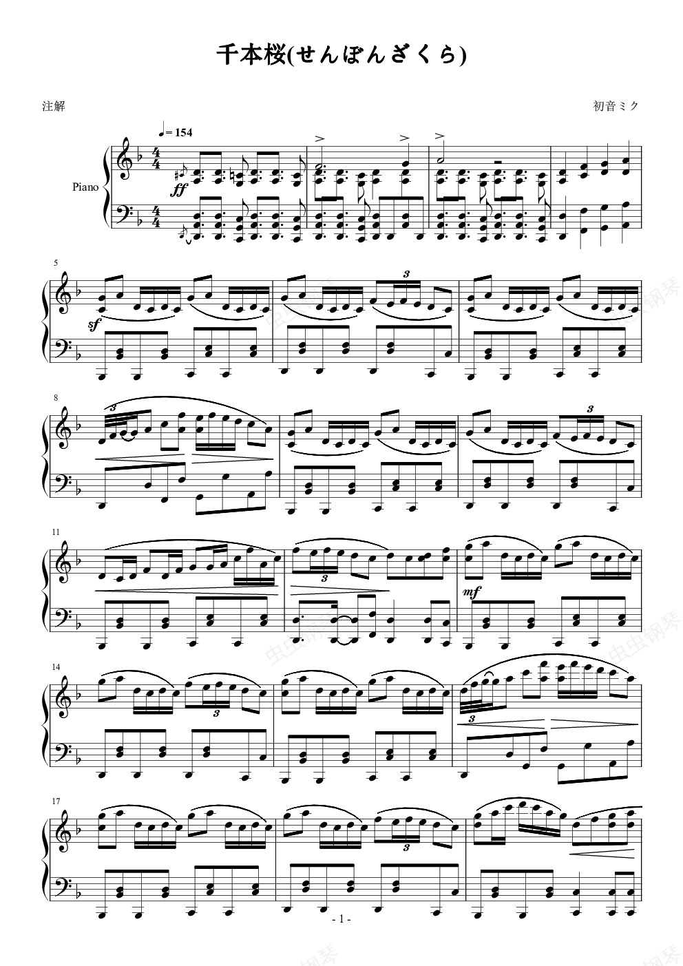 钢琴谱:千本樱[千本桜][せんぼんざくら]