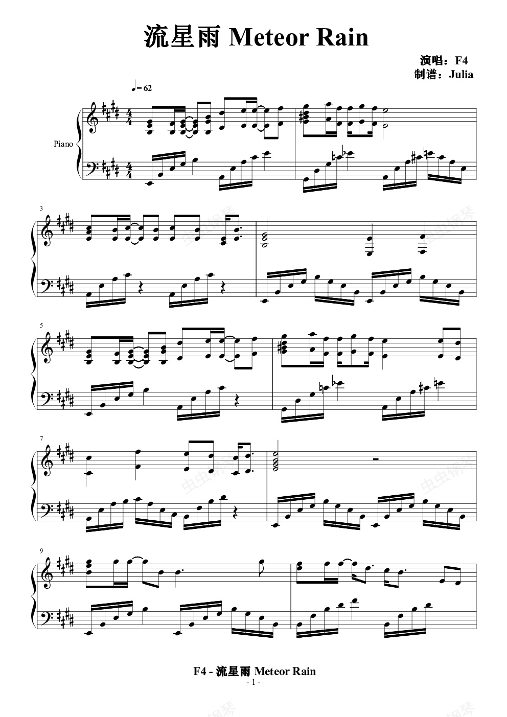 钢琴谱:F4 - 流星雨