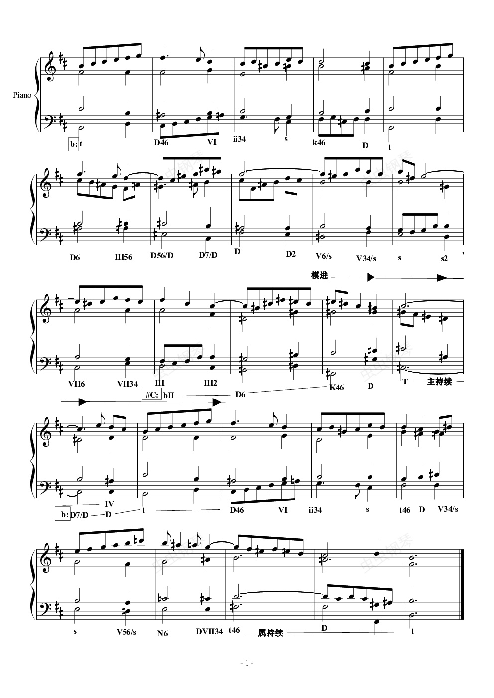 来自斯波索宾的《和声学》。前一阵子看了发的题解,当时就感觉有几个问题: 1,低声部一般不切分节奏; 2,没有把握住43拍的节奏; 3,部分内声部模仿太僵硬; 以上三点,源于同一个原因,硬造和声,这是很常见的。因为和声的进行有一些问题,就只能大量的引用其他音符作为辅助。 还有几个问题: 1,和声结构不好,部分地方和声选择色彩较弱; 2,段落的分界不明显,收束感不强; 3,没有把握原题中的模进处理。 出现这几个问题的原因,是没有对原题进行全方位分析,段落结构分化,然后进行总体的和声设计。 (6/11,修改了一处和声以及二处和声标注错误。) [IMG]/pu/2017/6/11/6527__9975__[/IMG]