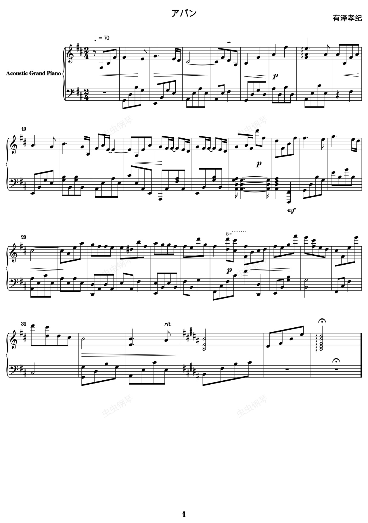 钢琴谱:アバン( フロンティア) 数码宝贝第四部背景音乐