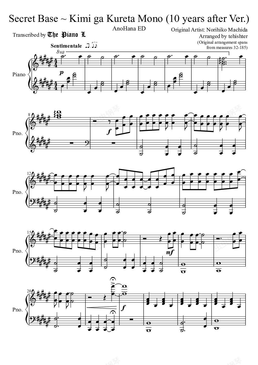 钢琴谱:【搬运】Secret Base10_years after Ver