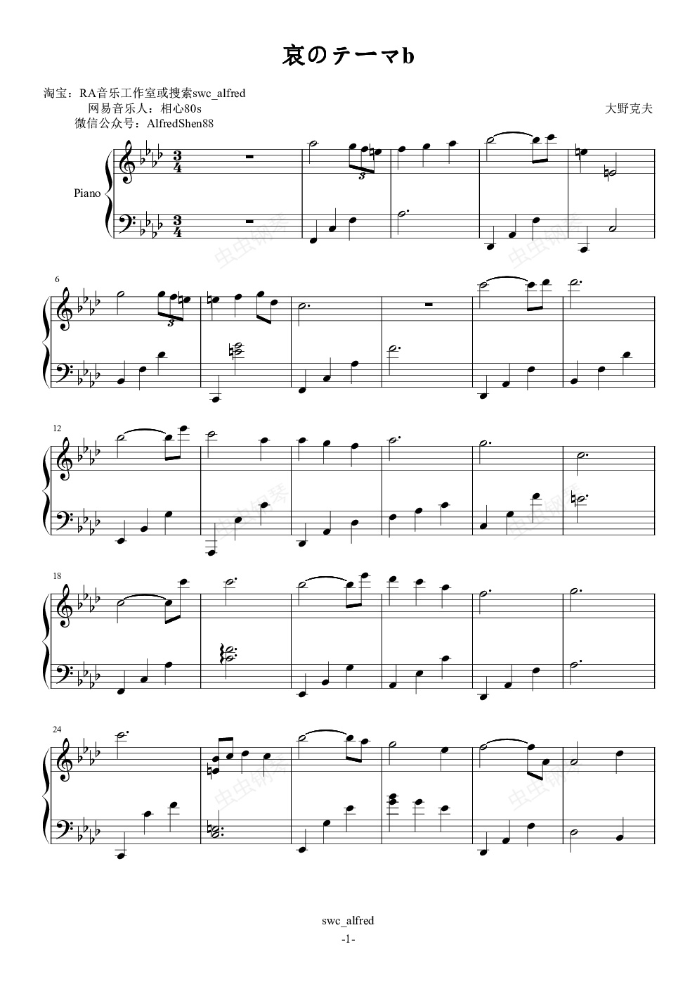 钢琴谱:哀のテーマb