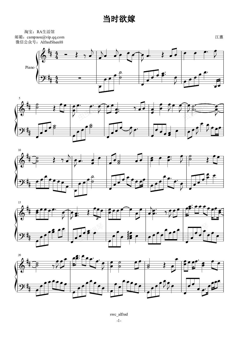 钢琴谱:当时欲嫁
