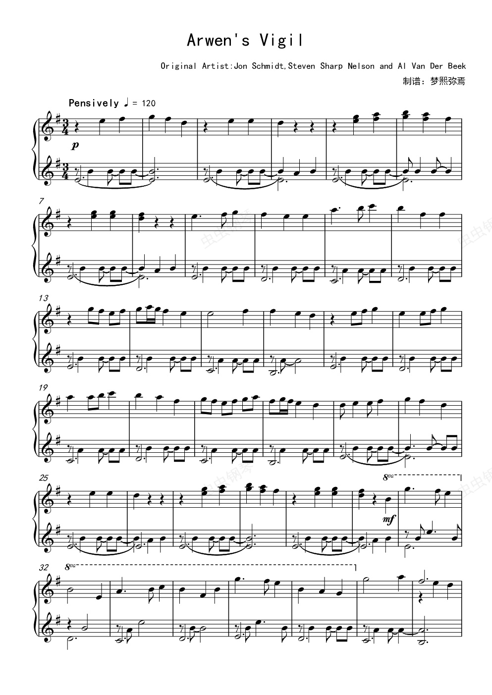 钢琴谱:Arwen‘s Vigil((piano ver)