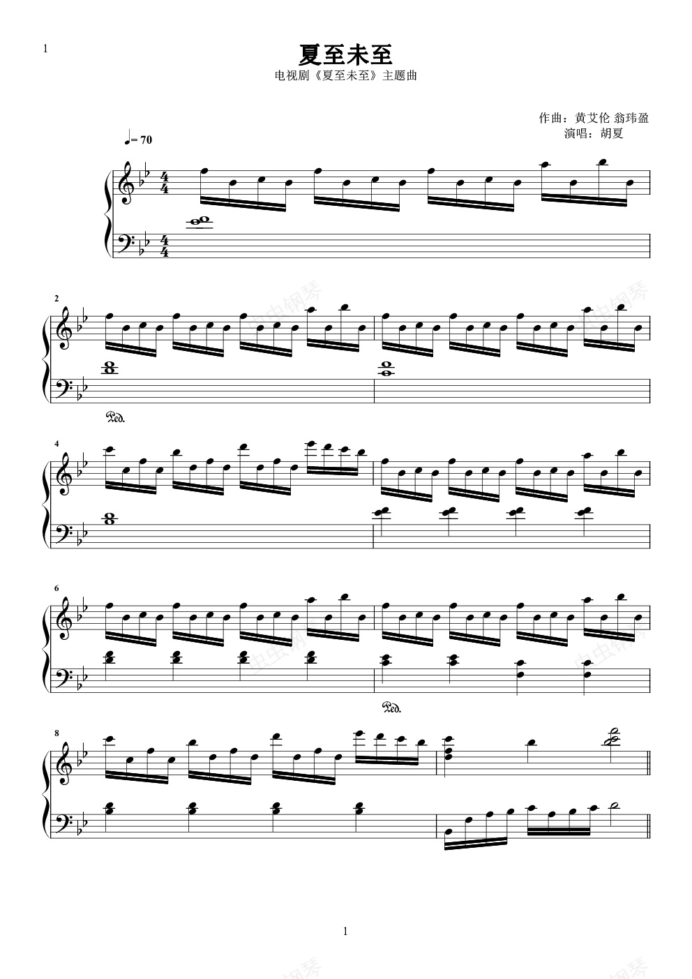 钢琴谱:夏至未至