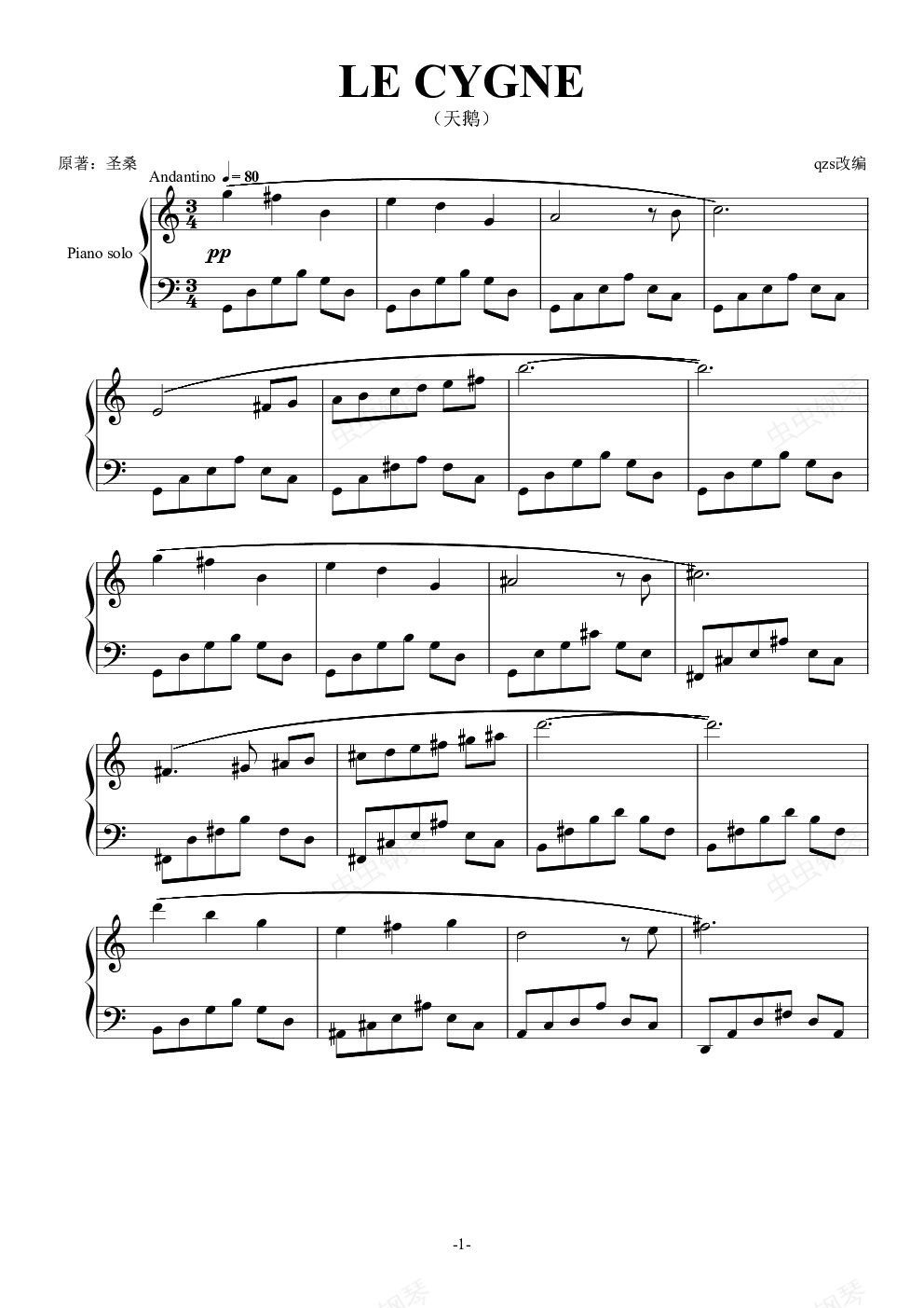 由圣桑的天鹅改编而成,降低了难度,适合新手练习
