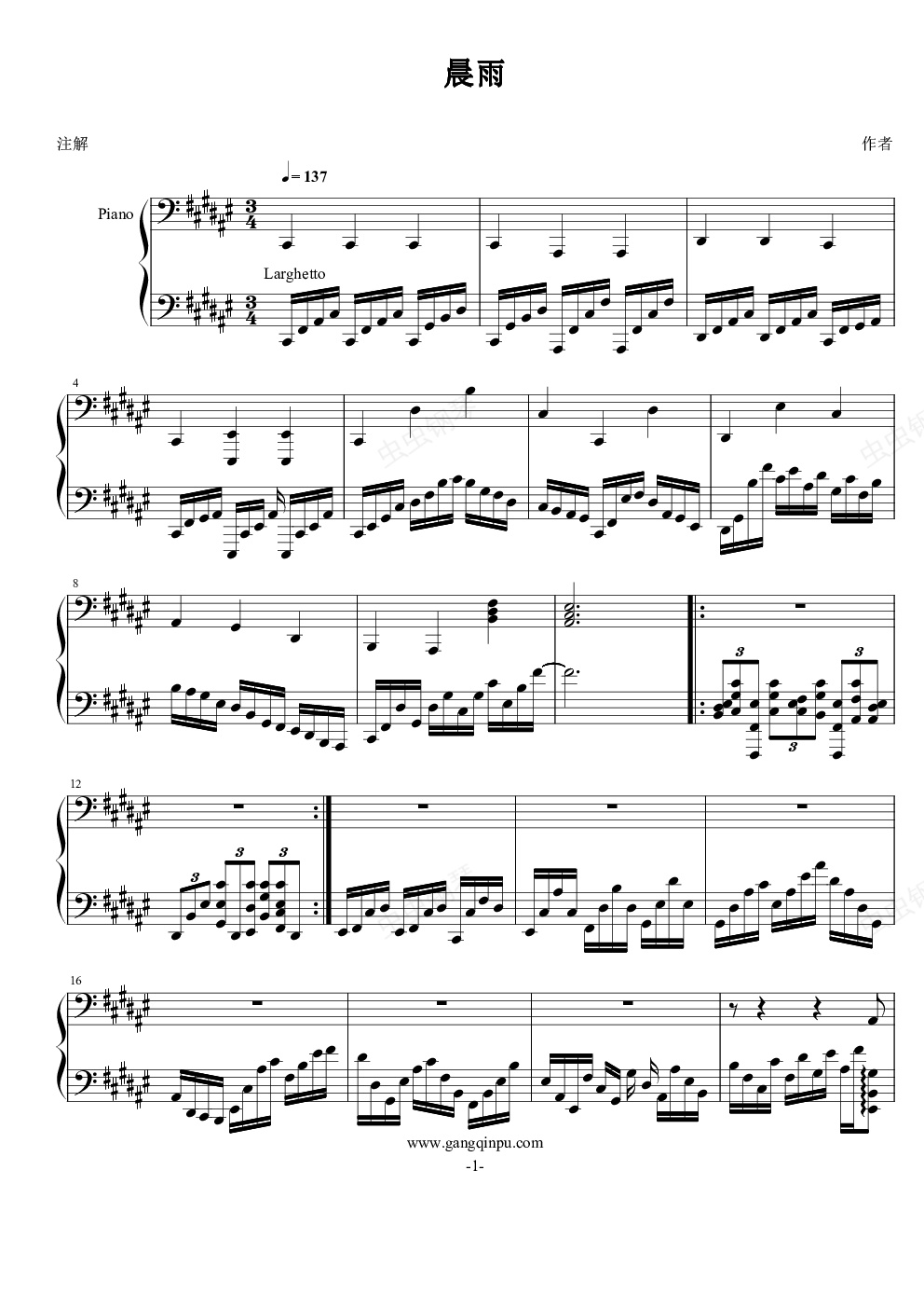 钢琴谱:晨雨