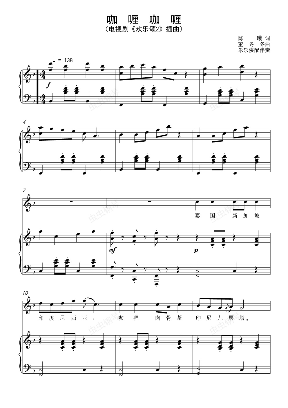 钢琴谱:咖喱咖喱(正谱)-电视剧《欢乐颂2》插曲
