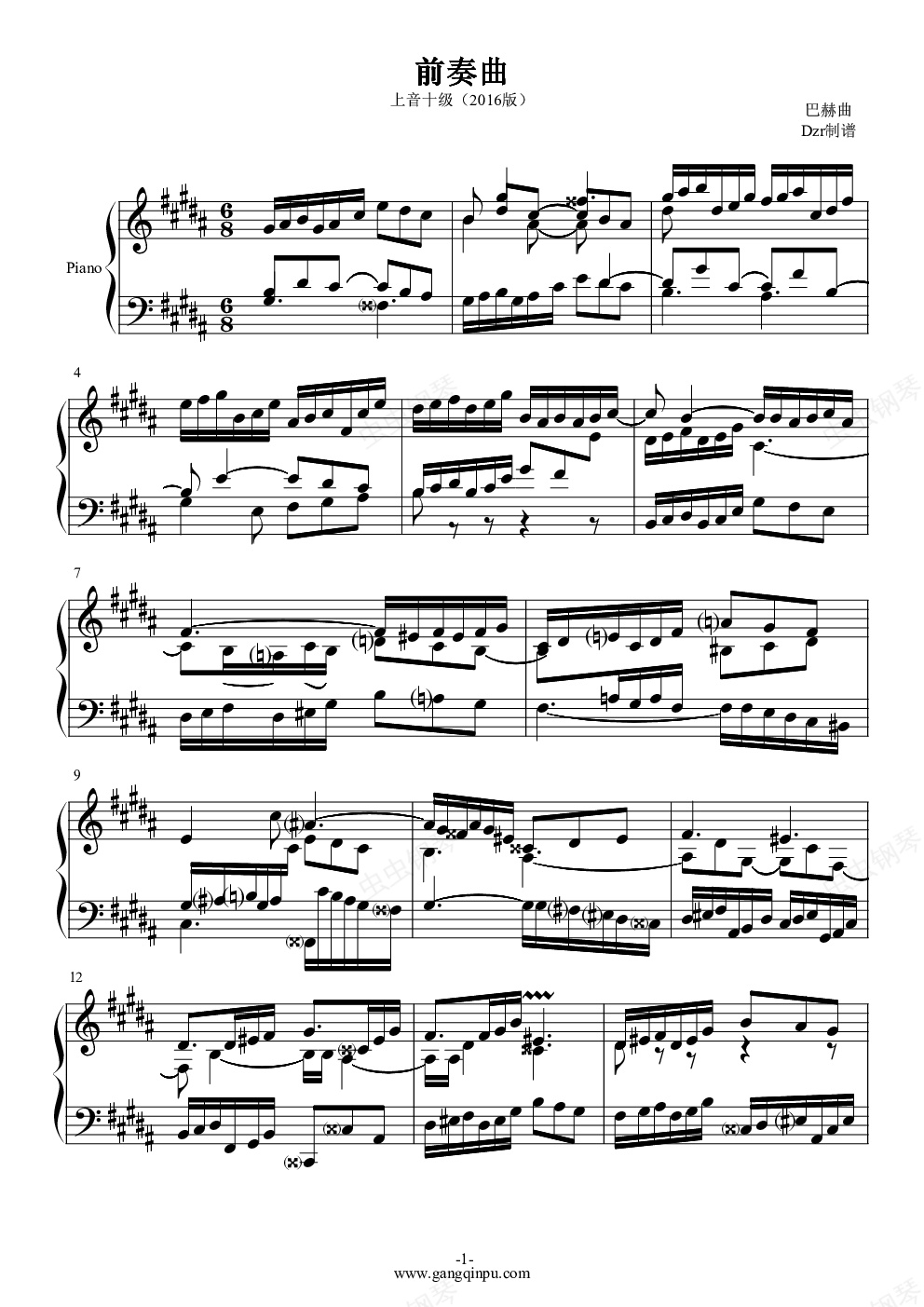 钢琴谱:前奏曲(巴赫)-上音钢琴考级十级