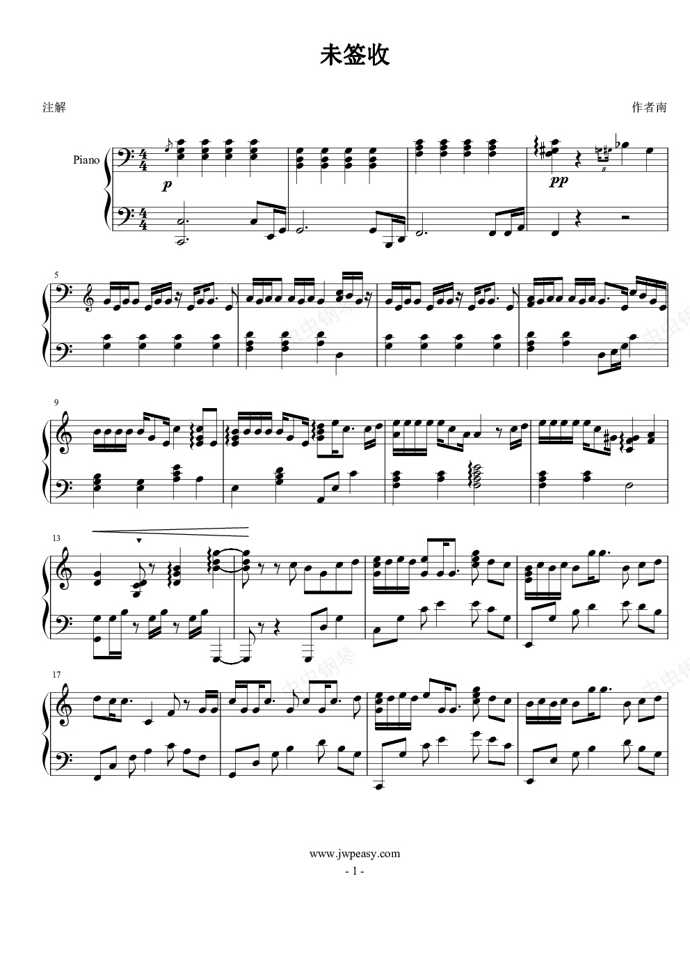 钢琴谱:未签收
